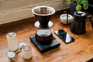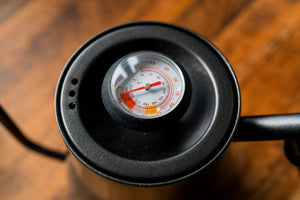 Use a pour-over kettle to heat your water to 96oc. Alternatively, boil an electric kettle and wait one minute for the water to cool slightly.