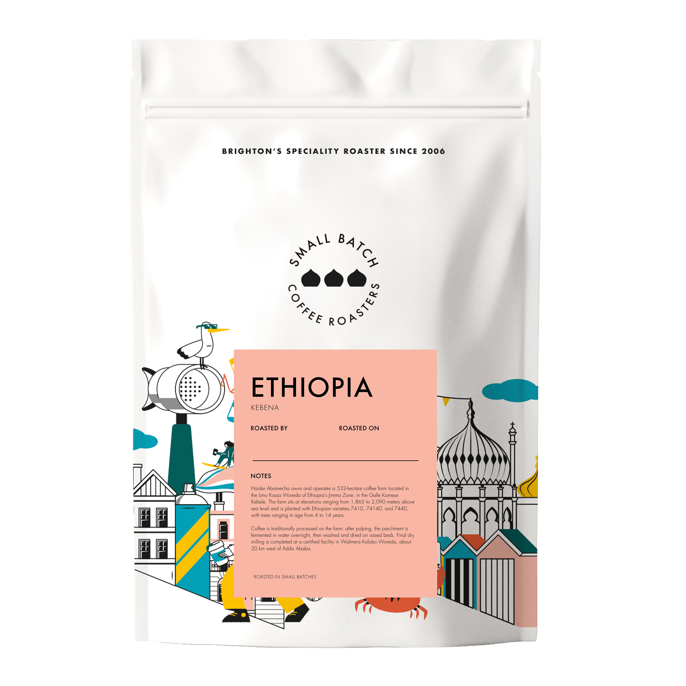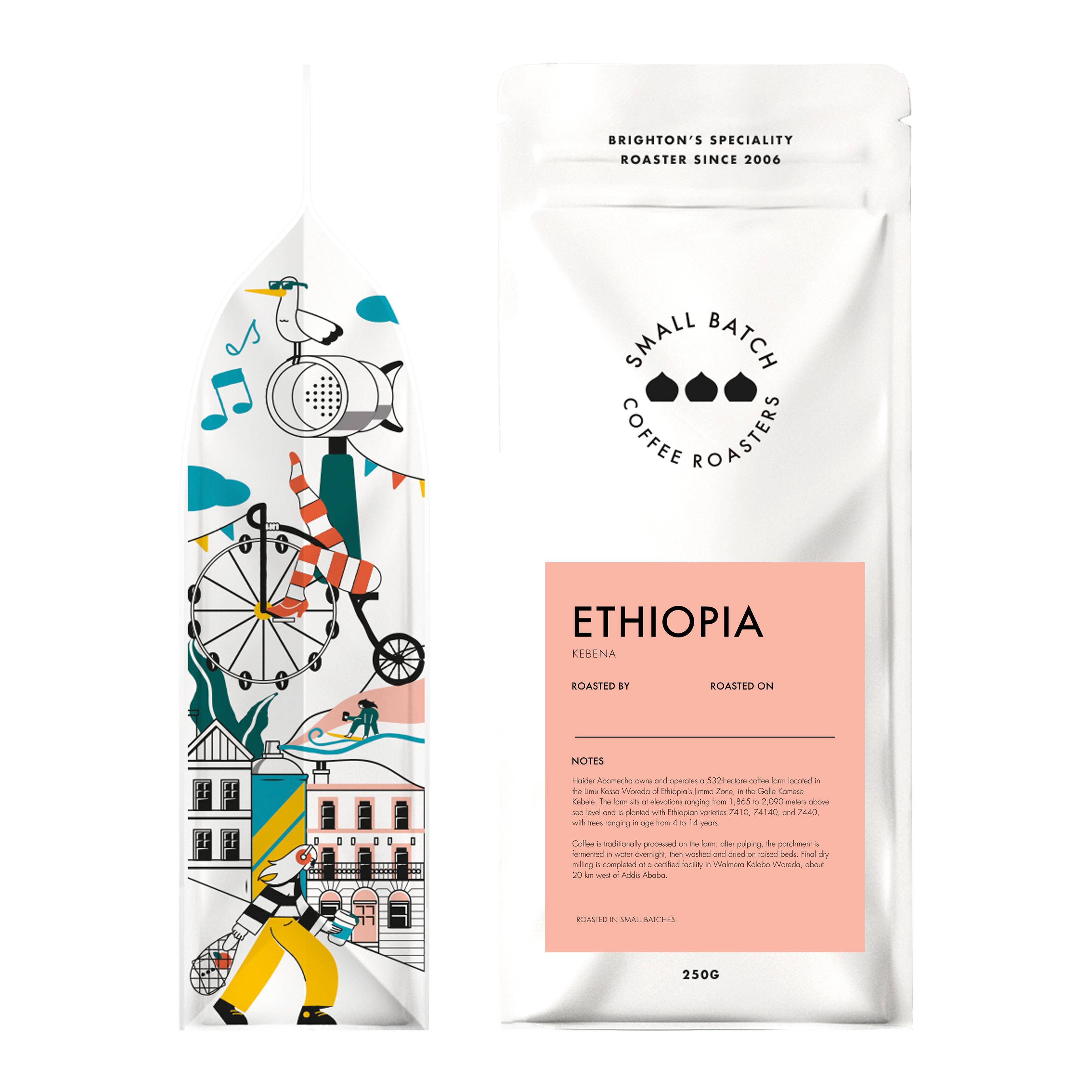 Coffee is traditionally processed on the farm: after pulping, the parchment is fermented in water overnight, then washed and dried on raised beds. Final dry milling is completed at a certified facility in Walmera Kolobo Woreda, about 20 km west of Addis Ababa.